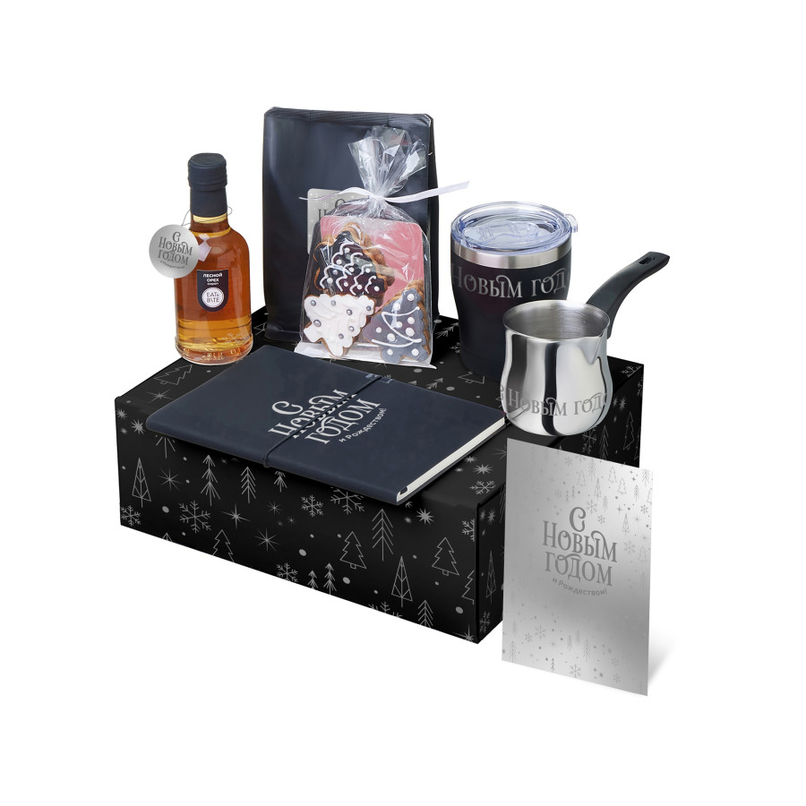 Подарочный набор с туркой, кофе и термокружкой, черный