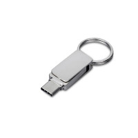 Флеш-накопитель поворотный механизм, c дополнительным разъемом TypeC, с одноцветным металлическим клипом. , объем памяти USB3 32 Гб. Металлический корпус.