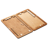 В комплект входят фишки из фанеры двух оттенков, гармонирующих с базовым цветом доски.