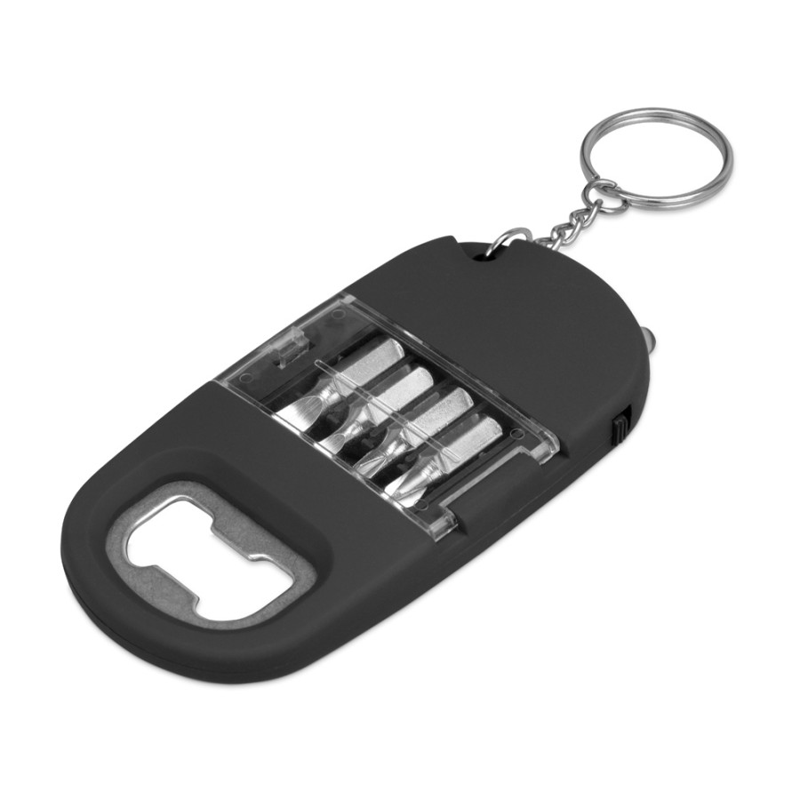 Брелок-открывалка с отвертками и фонариком Uni, софт-тач, черный (Р)