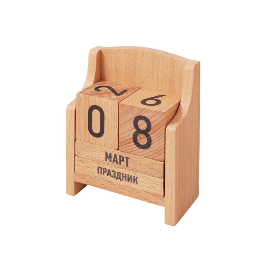 Стильный и функциональный календарь из натурального бука станет элегантным украшением рабочего стола или интерьера. Помимо стандартных дат календарь включает 12 поводов — дни недели и настроения, которые можно отмечать каждый день, создавая настроение и отмечая особые моменты.