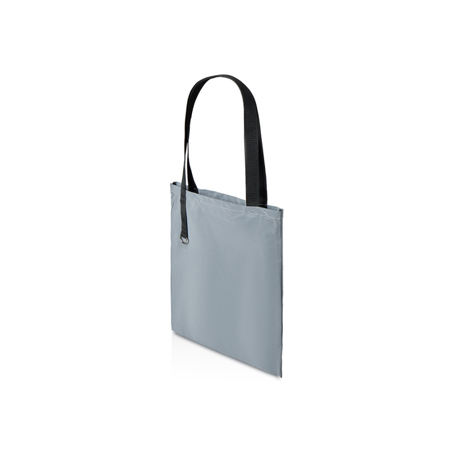 Сумка для покупок из светоотражающей ткани обеспечивает дополнительную защиту в темное время суток. Прочные ручки длиной 68 см. Металлическое д-кольцо на хлястике предусмотрено для крепления ремувок с вашим логотипом.