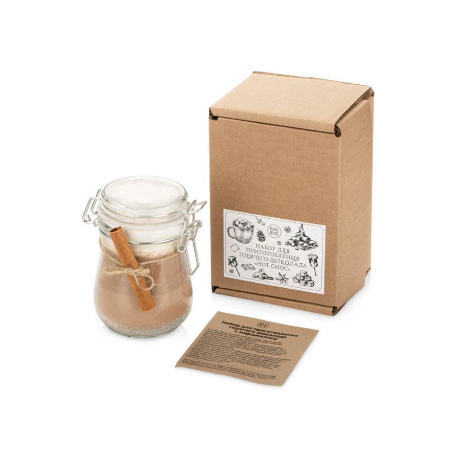 Для одной чашки шоколада потребуется 4-5 столовых ложек шоколадной смеси на 200 мл молока или воды. Не забудьте предварительно перемешать содержимое банки, чтобы смешать слои. Комплектность: банка с заготовками для шоколада, пакетик с маршмеллоу