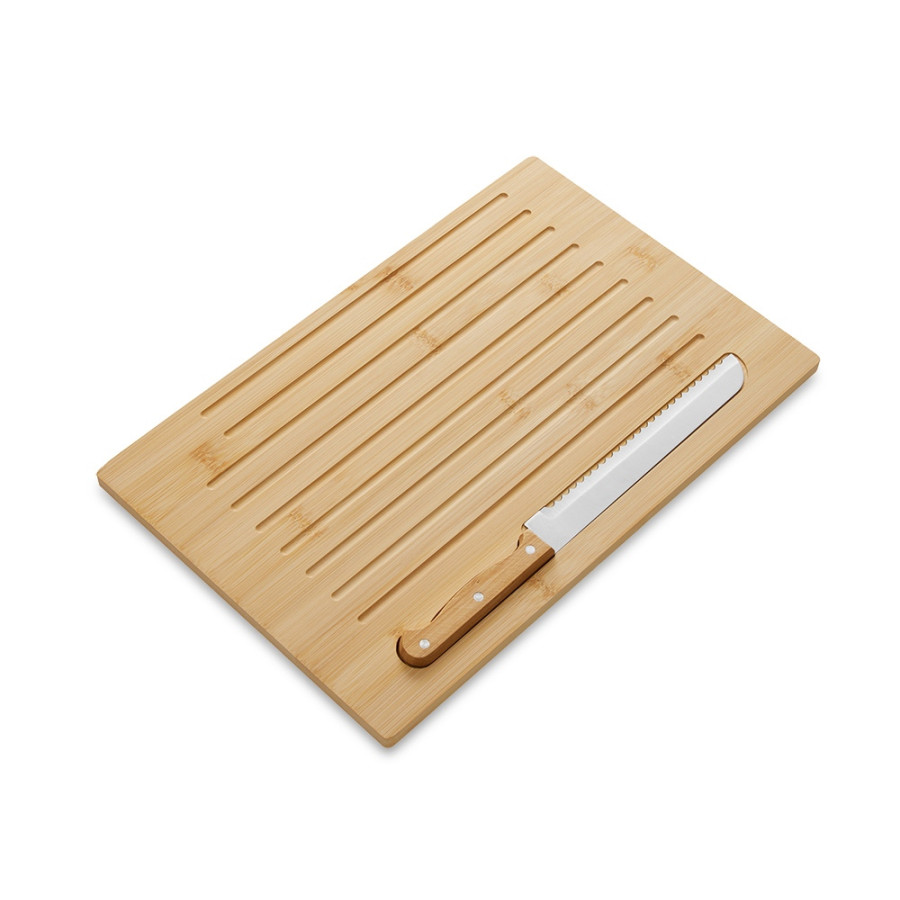 Доска Круста с хлебным ножом — идеальный дуэт для нарезки хлеба. На поверхности доски предусмотрены специальные выемки для сбора крошек, что делает нарезку удобнее, сохраняя поверхность вокруг идеально чистой. Нож удобно хранится прямо в доске: для него вырезано аккуратное посадочное место, чтобы инструмент был всегда под рукой. В углу доски предусмотрена специальная зона для нанесения логотипа — это делает набор идеальным корпоративным подарком. Бамбук — легкий, прочный и экологичный материал, который не впитывает запахи.