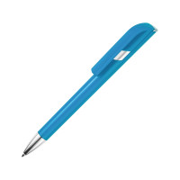 Пластиковая ручка с цветным корпусом и серебристым носиком привлечет внимание своим необычным дизайном: при нажатии на кнопку двигается только часть клипа, а вторая – остается на месте. Из шести расцветок можно выбрать ту, что наилучшим образом подойдет к вашим фирменным цветам.