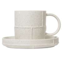 Оригинальная фарфоровая чайная пара цвета топленого молока в легкую крапинку со швами станет эффектным и запоминающимся подарком.