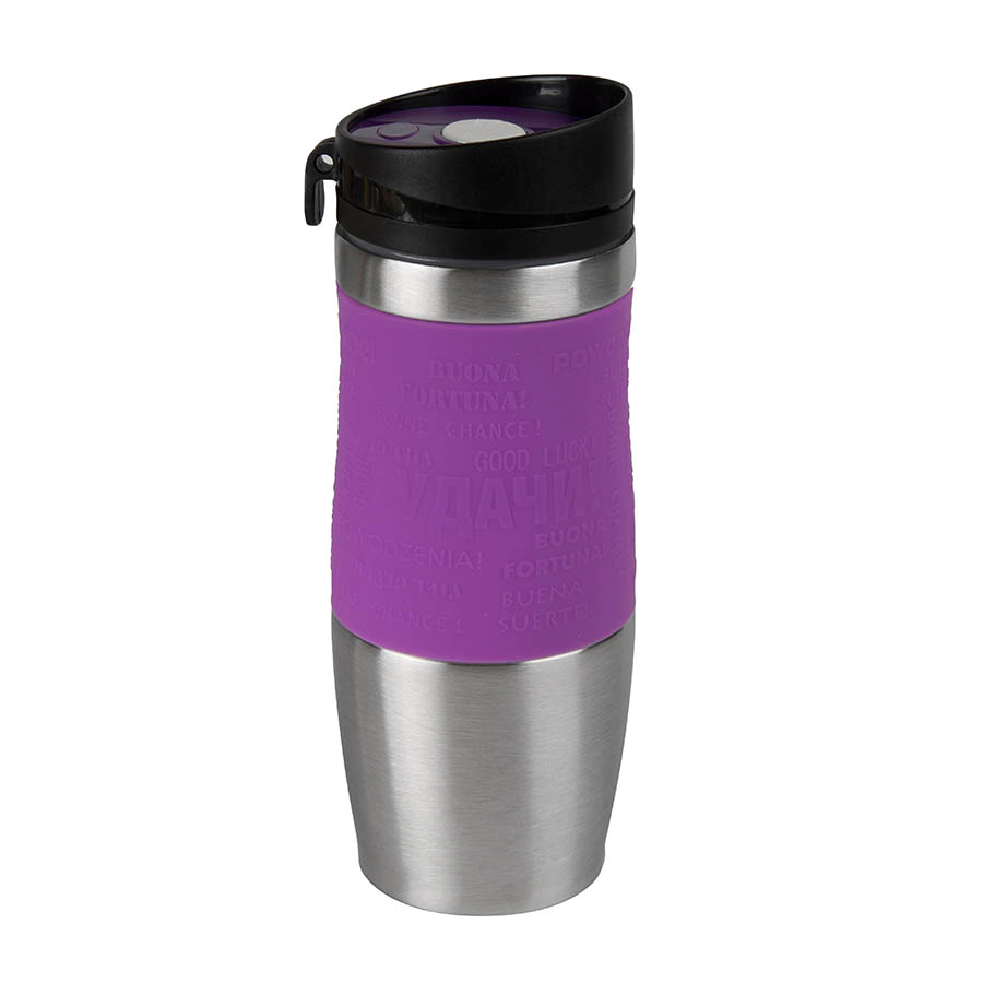 Термокружка вакуумная "УДАЧА silver", 400 мл, фиолетовый, металл/силикон
