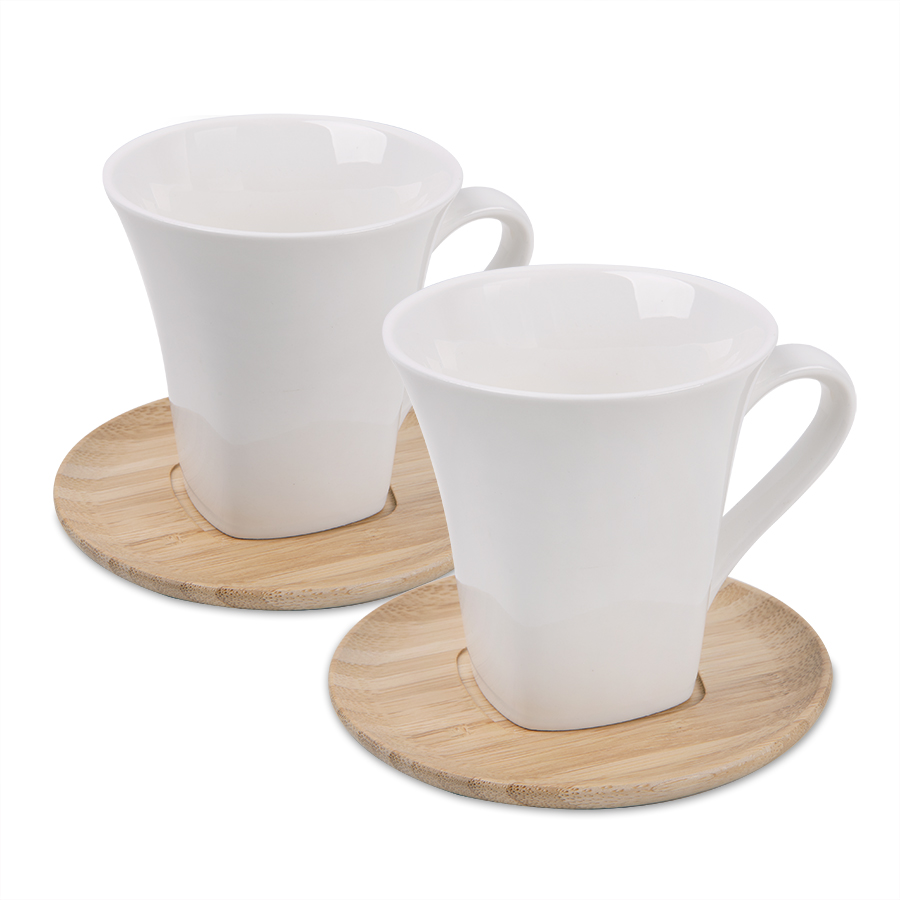 Набор «Натали» – изысканный и элегантный комплект из двух чайных пар для подружек-сплетниц или дружных коллег. Фарфоровые чашки изящной формы на бамбуковых блюдечках напоминают скользящие по водной глади яхты с белыми парусами.