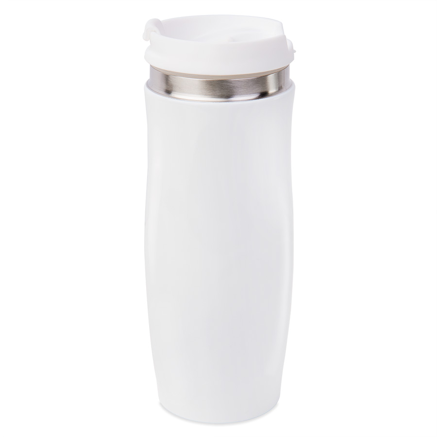 Термокружка вакуумная дорожная "Фантазия-2"; 400 мл; белый металл