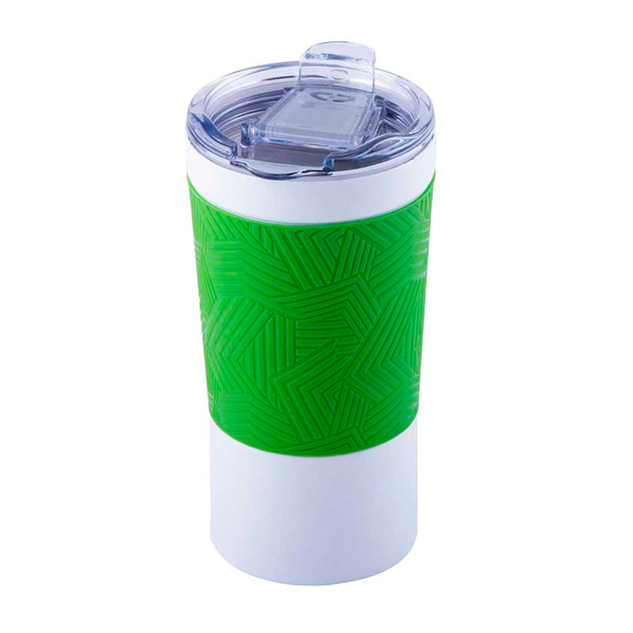 Термокружка вакуумная 'Funny" белая, зеленое яблоко, силикон