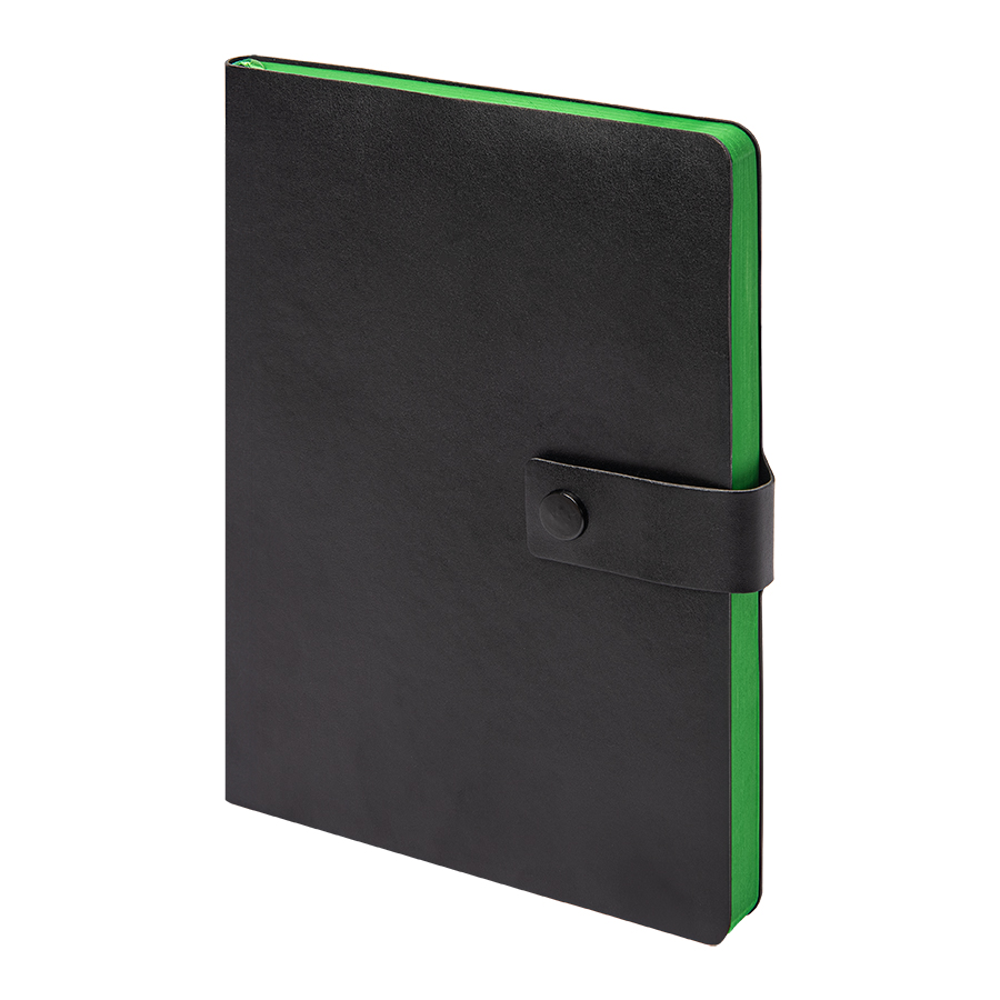 Ежедневник недатированный Stellar, А5, черный, кремовый блок в линейку, с зеленым обрезом