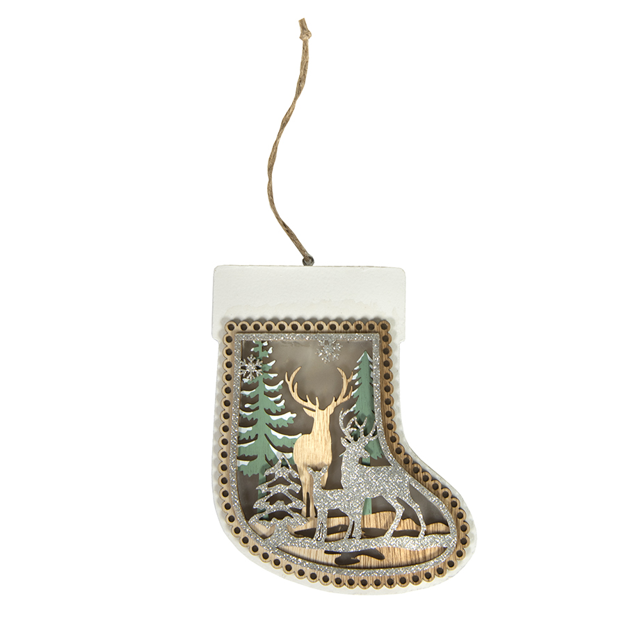Украшение с подсветкой "Валенок", 17, 5*14*2 cм, дерево, натуральный бежевый