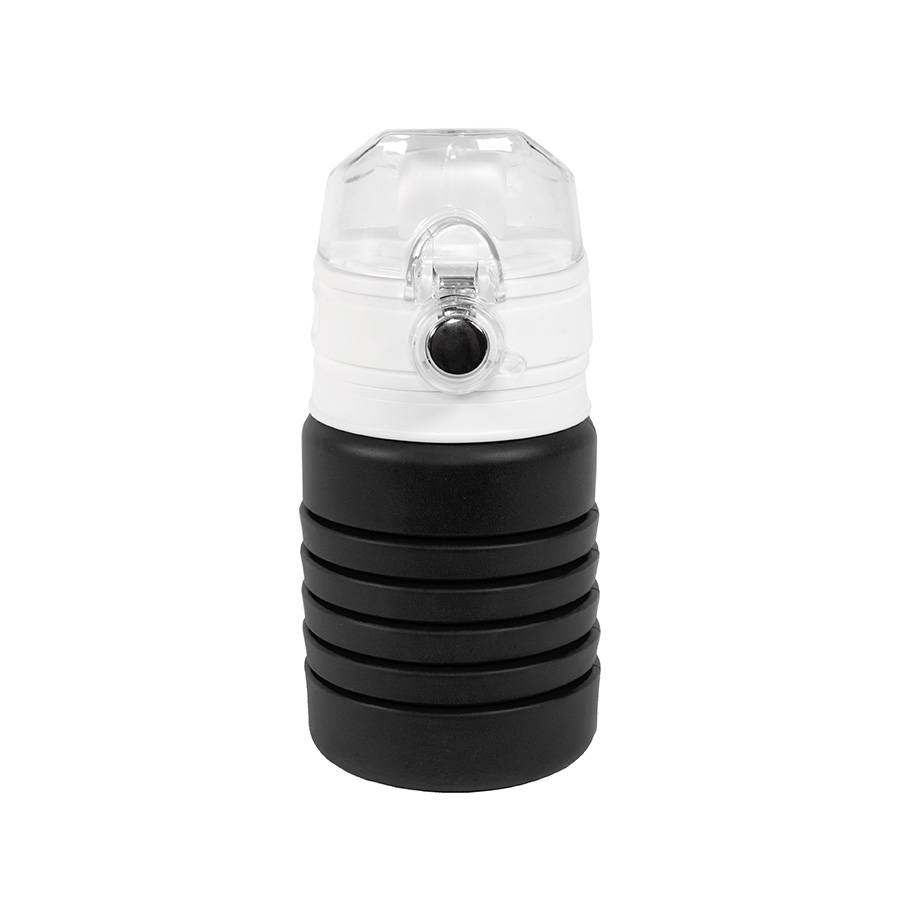 Бутылка для воды складная с карабином SPRING; черная, 550/250 мл, силикон