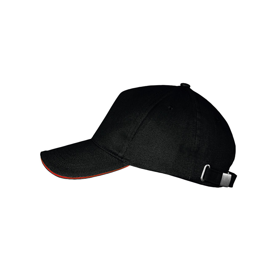 Бейсболка "LONG BEACH", 5 клиньев, метал. застежка, черный/красный, 100% хлопок, плотность 260 г/м2