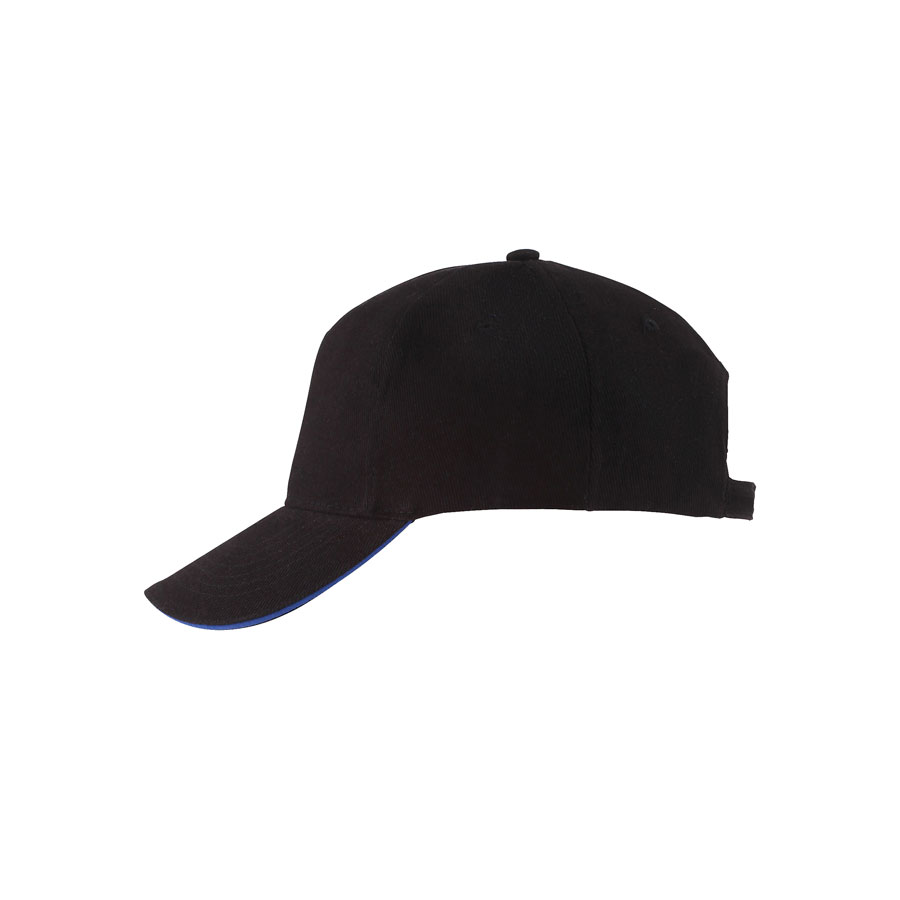 Бейсболка "LONG BEACH", 5 клиньев, метал. застежка, черный/я. синий, 100% хлопок, плотность 260 г/м2