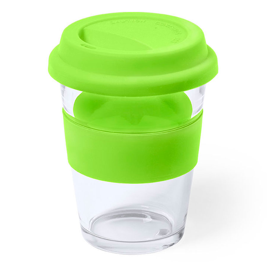 Стакан DURNOX с силиконовой крышкой, прозрачный с зеленым, 350мл, 12, 4х9, 5см, стекло, силикон