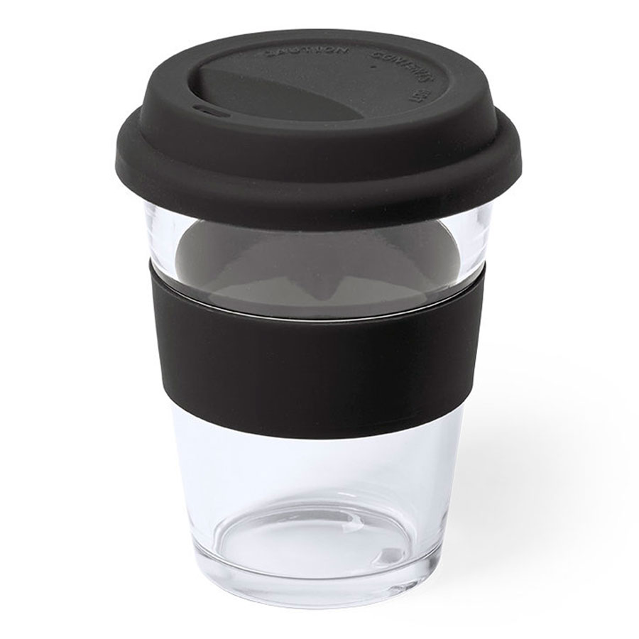 Стакан DURNOX с силиконовой крышкой, прозрачный с черным, 350мл, 12, 4х9, 5см, стекло, силикон