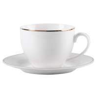 Эстетичная чайная пара из костяного фарфора, способна передать дух императорского времени. Материал - костяной фарфор, содержит в своем составе примеси обожженной костяной муки. Набор выделяется особой воздушностью и элегантностью. За счет материала стенки чашки на порядок тоньше обычного фарфора, при этом не теряя прочности. Блюдце имеет удобную выемку, которая не дает чашке скользить. Обе части набора оформлены позолоченным кантом.