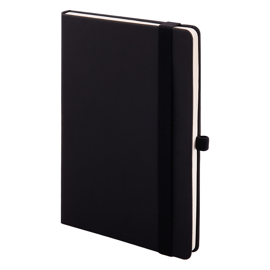 Самый популярный блокнот в твердой обложке, с эластичной резинкой, пенхолдером и ляссе в тон.