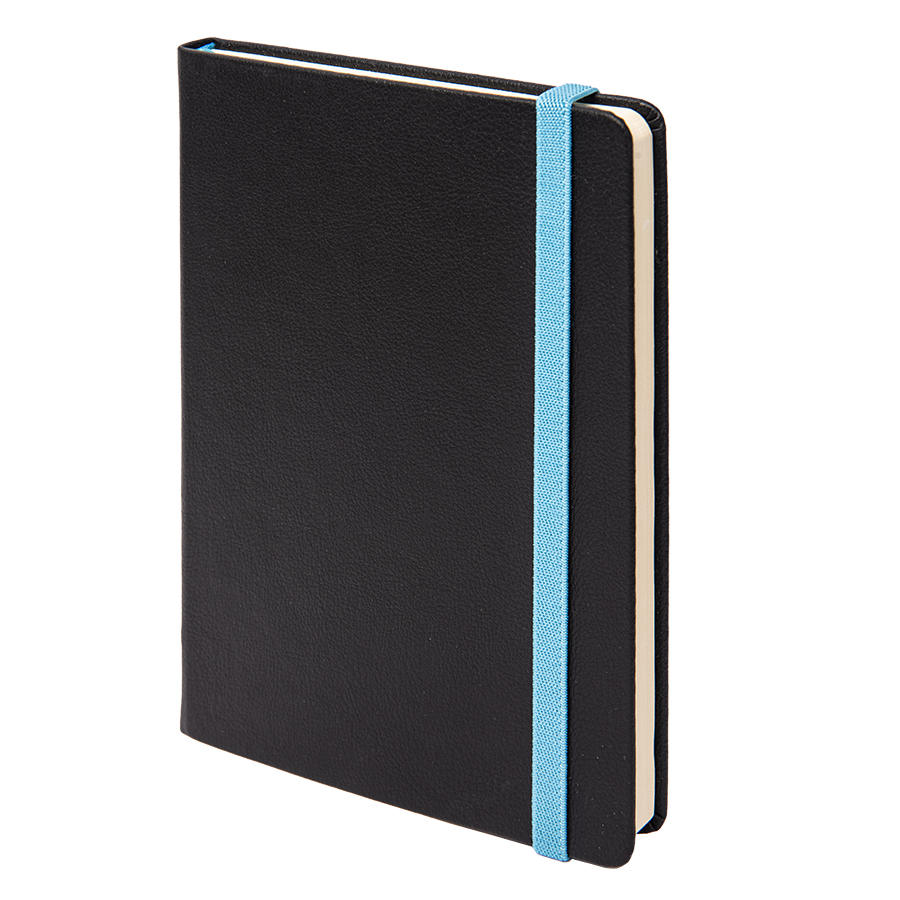 Ежедневник недатированный Ray, А5, черный/голубой, кремовый блок, без обреза