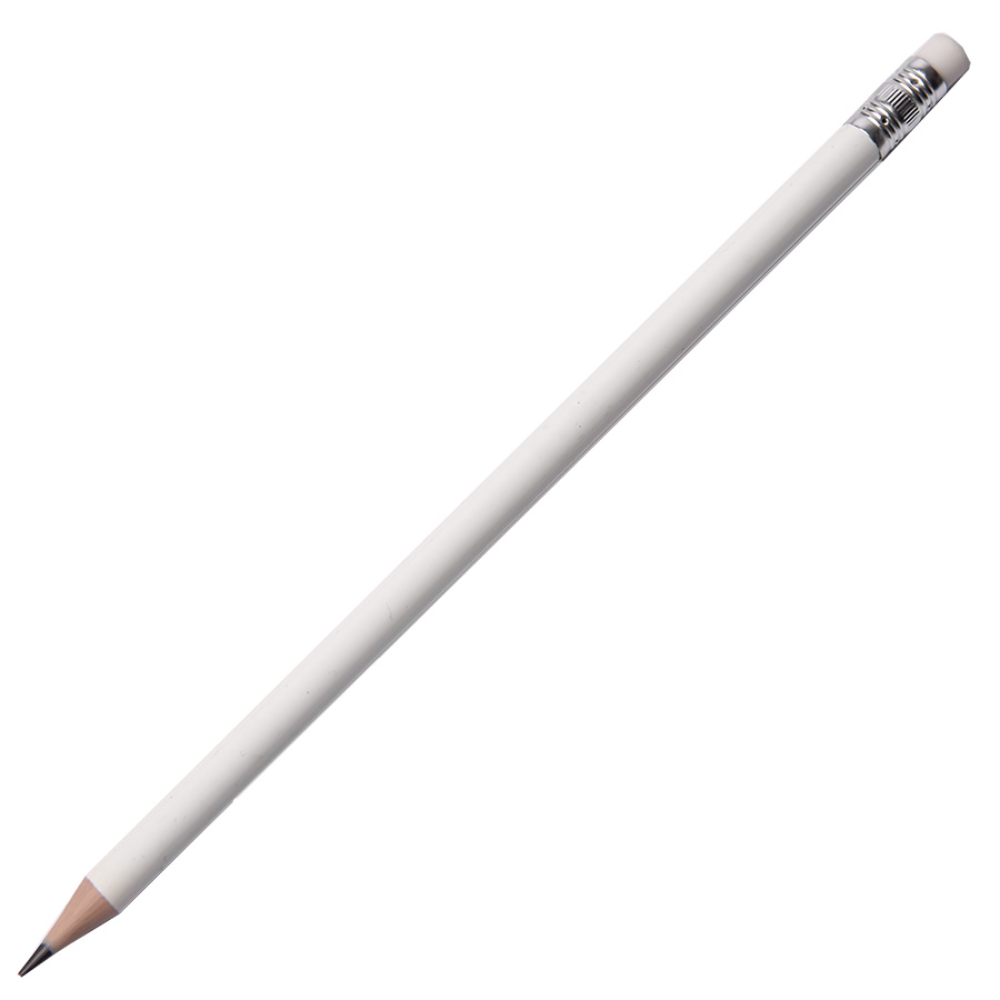 Карандаш чернографитный круглый MIZORI с ластиком, пластиковый, HB, белый
