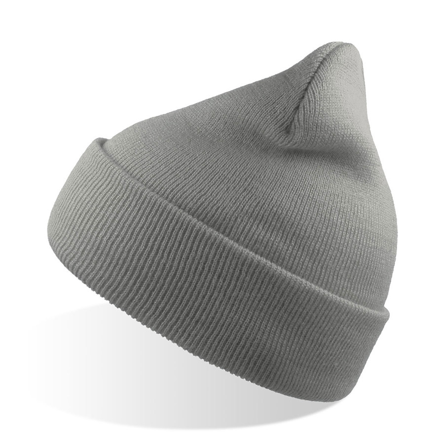 Шапка вязаная двойная "Wind", с отворотом_серый, 100% акрил
