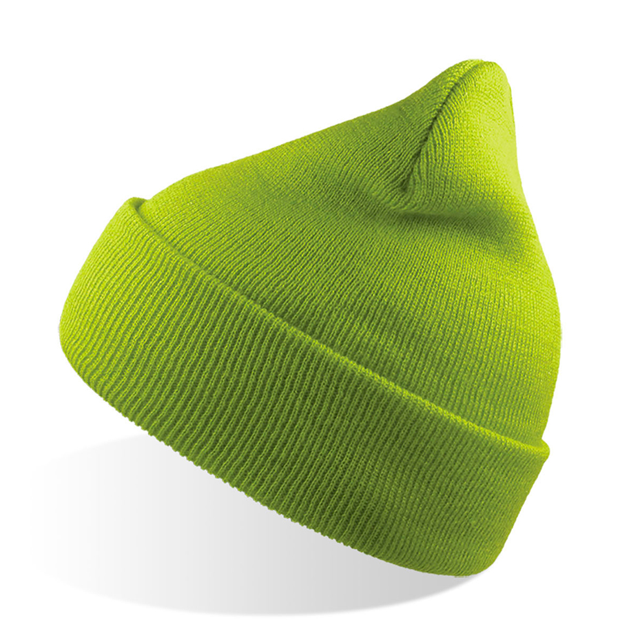 Шапка вязаная двойная "Wind", с отворотом_лаймовый, 100% акрил