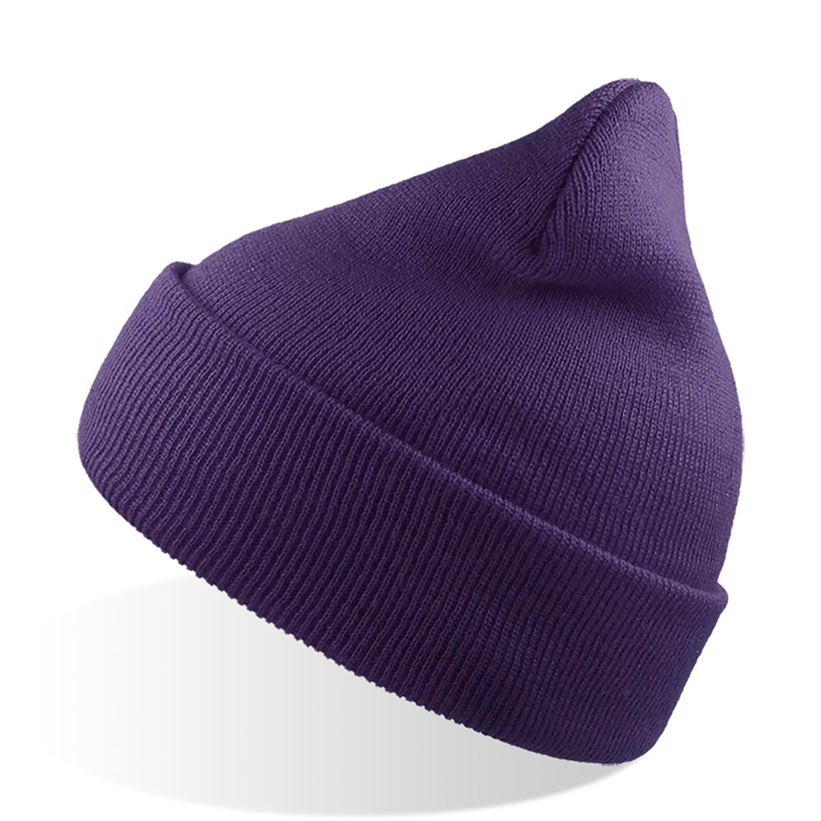 Шапка вязаная двойная "Wind", с отворотом_фиолетовый, 100% акрил