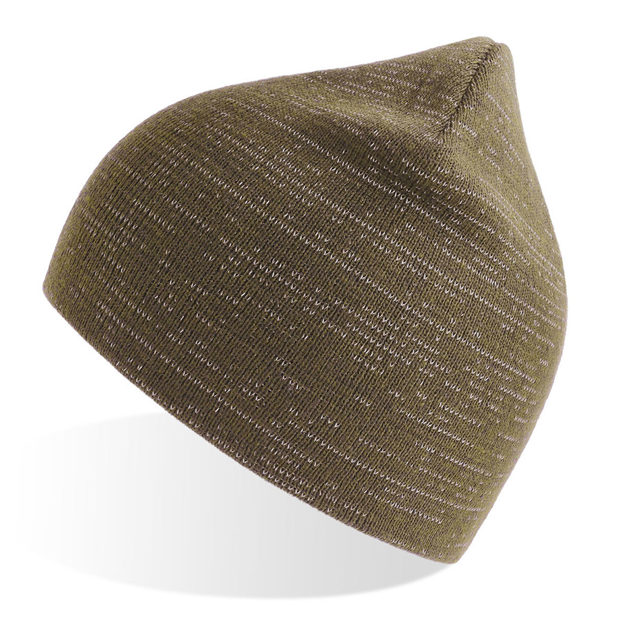 Шапка вязаная "SHINE" светоотражающая, оливковый, 50% переработанный полиэстер, 50% акрил