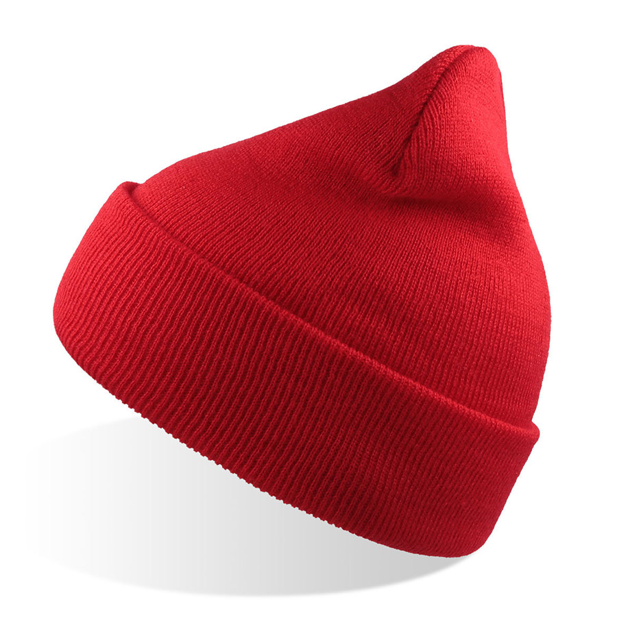 Шапка вязаная двойная "Wind", с отворотом_красный, 100% акрил