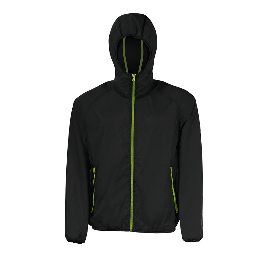 ветровки на эластичной тесьме. Молнии ветровки контрастного цвета. Складывается