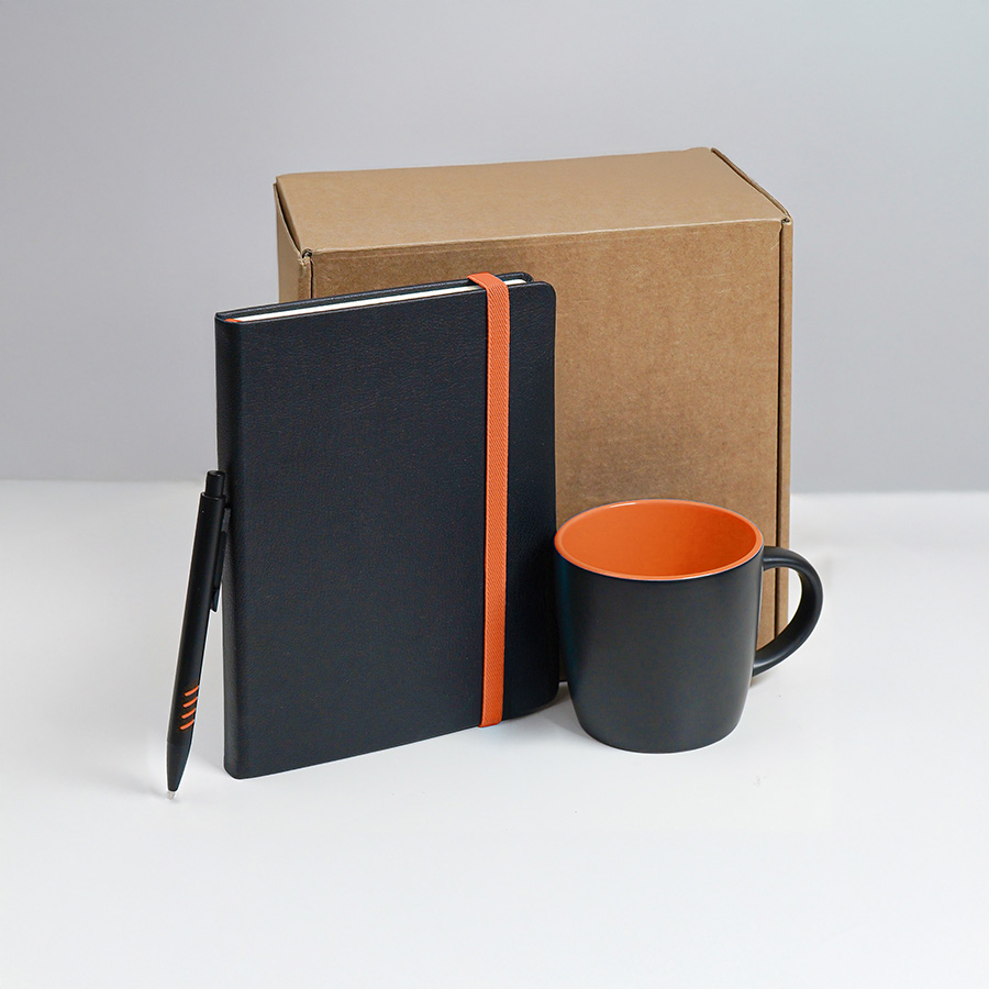 Набор подарочный HYPER: кружка, ежедневник, ручка; черный/оранжевый