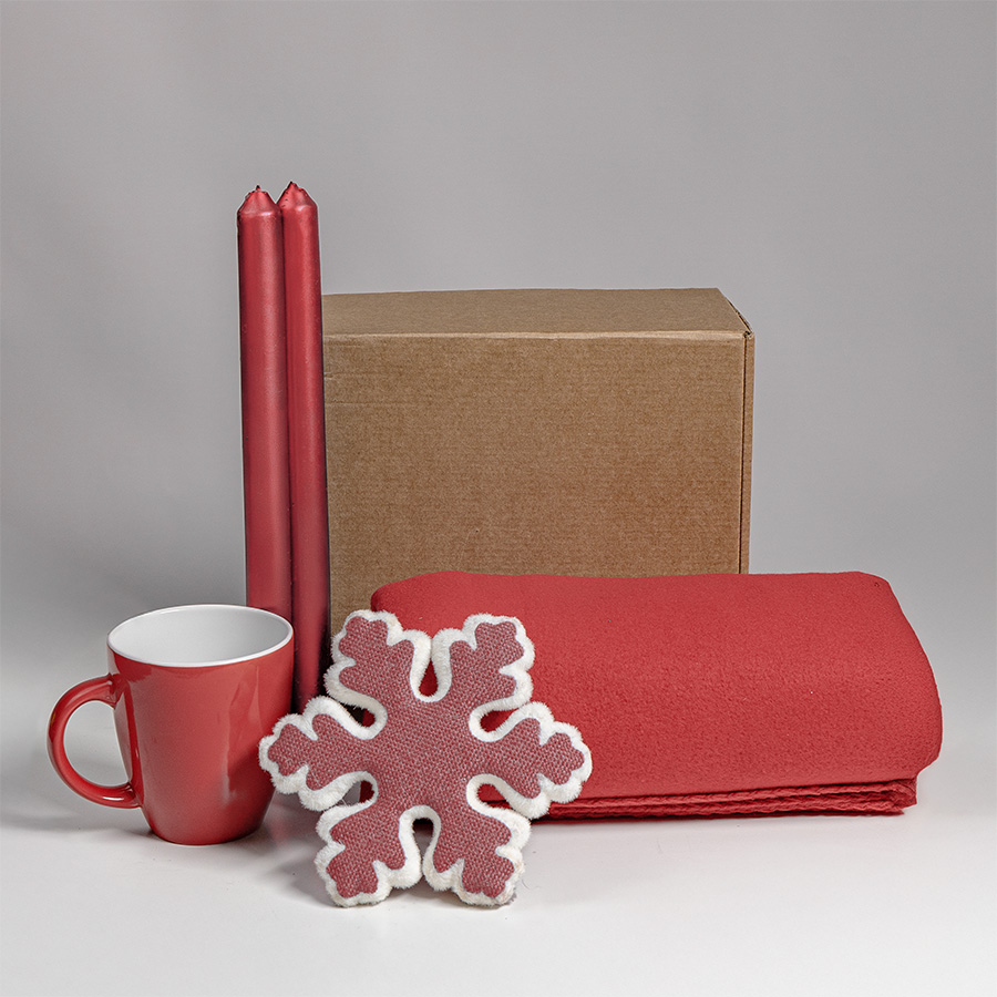 Набор подарочный MOOD: плед, кружка, игрушка, свечи; красный