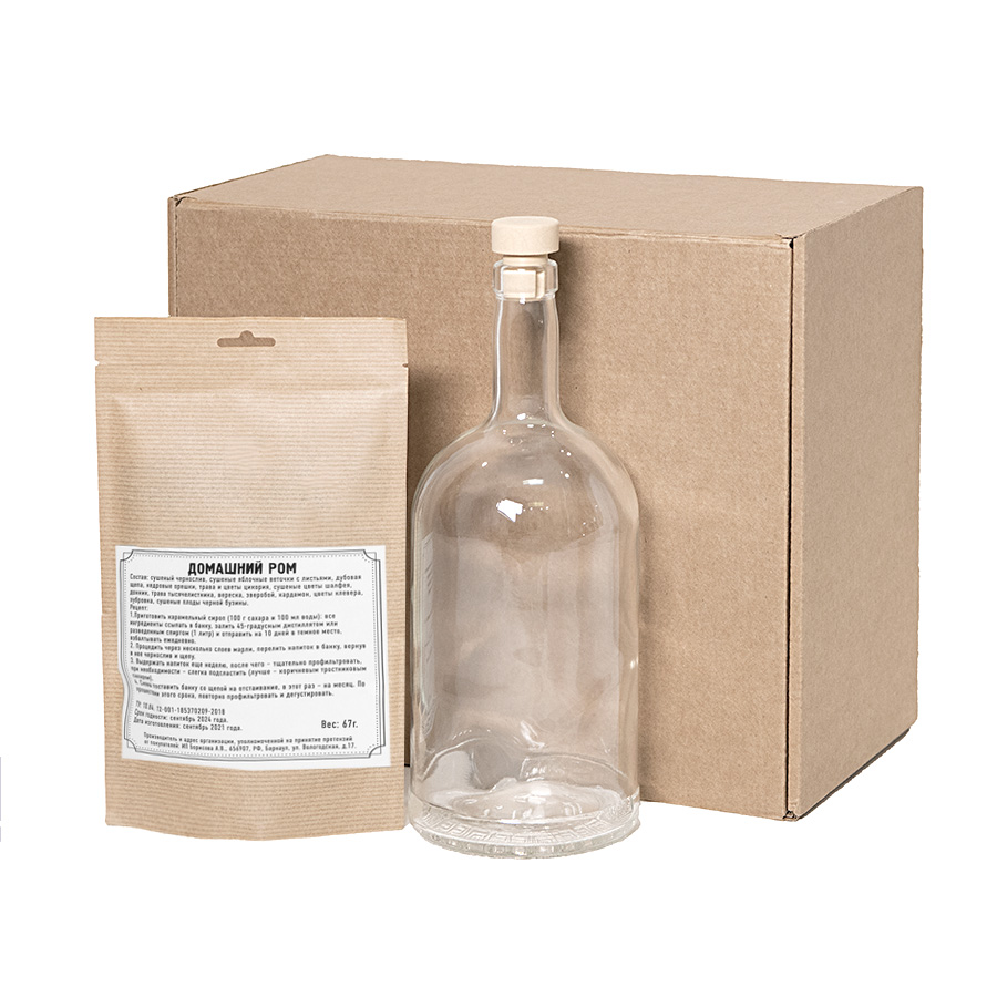 - набор трав и специй "Домашний ром" (сушеный чернослив, сушеные яблочные веточки с листьями, дубовая щепа, кедровые орешки, трава и цветы цикория, сушеные цветы шалфея, донник, трава тысячелистника, вереска, зверобой, кардамон, цветы клевера, зубровка, сушеные плоды черной бузины),