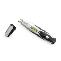 строенный в корпус уровень и светодиодный фонарик.