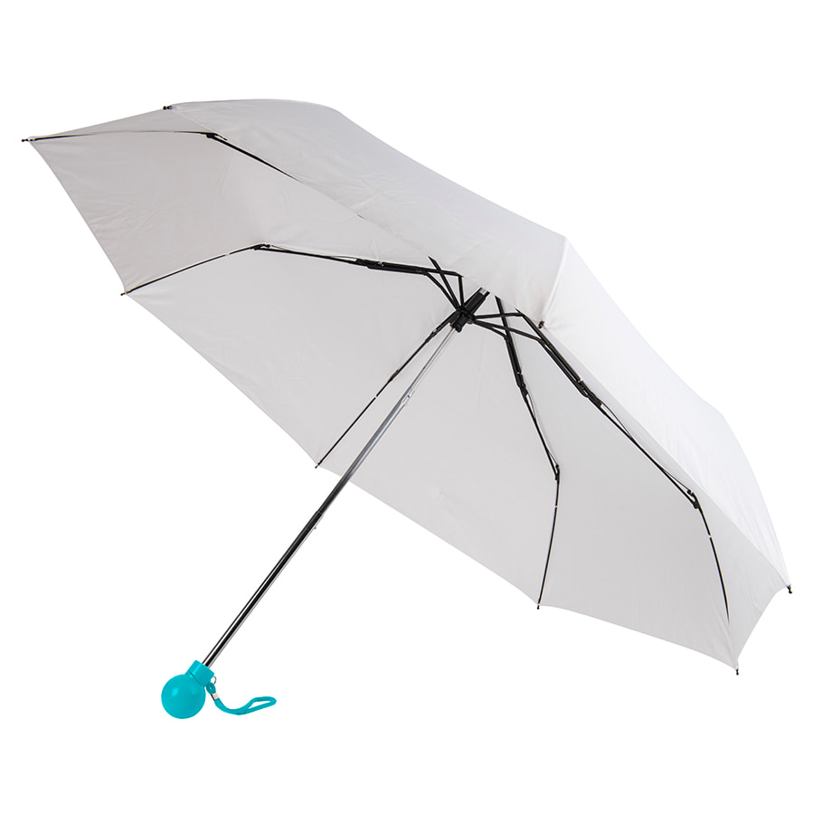 Зонт складной FANTASIA, механический, белый с голубой ручкой