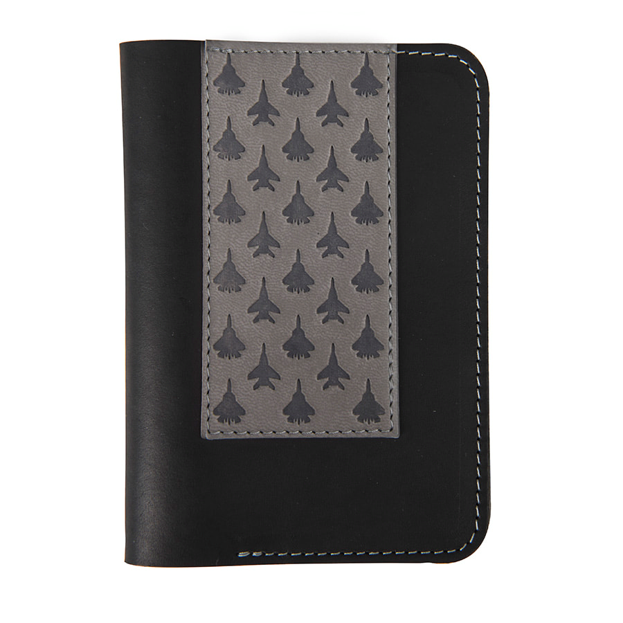 Обложка для паспорта, "Самолеты", черный, кожа натуральная 100%