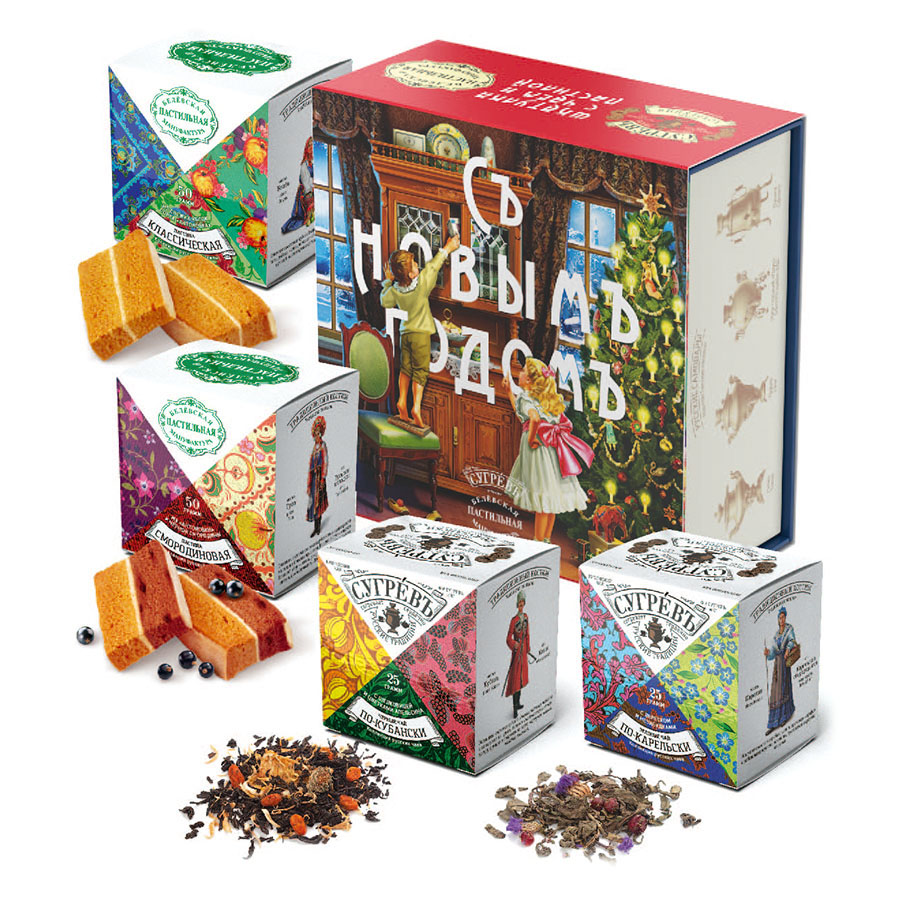 Совместный проект «Белёвский пастильной мануфактуры» (БПМ) и «Чайного дома Сугревъ». Набор включает два листовых чая с добавлением трав и ягод, а также две пастилы - классическую и со вкусом смородины.