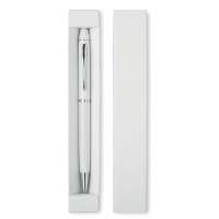 Алюминиевая шариковая ручка с поворотным механизмом и стилусом. Синие чернила. Картонная коробка.