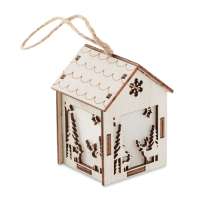 Декоративный домик из МДФ с внутренней подсветкой с рождественским орнаментом и подвеской. Батарейки в комплекте.