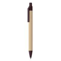 Ручка шариковая в корпусе из картона. Фурнитура является сплавом из 40% кофейной кожуры и 60% пластика АБС.