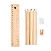 Набор из 12 карандашей . 2 простых карандаша, 6 цветных, 1 точилка, 1 ластик, линейка нанесена на крышку коробки.