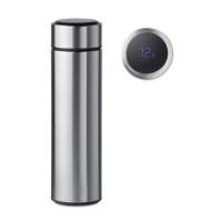 Термос заварочный вакуумный двустенчатый из нержавеющей стали. Матовая прокраска корпуса. В комплект входит чайное сито, которое устанавливается внутри колбы. Крышка имеет встроенный сенсорный светодиодный термометр, активируется резким нажатием на экран. Батарейка тип CR2450 в комплекте. Замена батарейки не предусмотрена. Объем 450 мл. При гравировке металлической части корпуса вскрывается темно-серебристый матовый цвет.