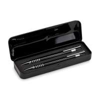 Набор: алюминиевая шариковая авторучка и механический карандаш в металлической коробке подходящего дизайна.