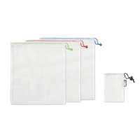 Набор из 3 сетчатых сумок из RPET . Закрывается кулиской. Можно стирать в стиральной машине. Не содержит BPA.