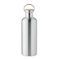 Термобутылка из нержавеющей стали с двойными стенками, крышкой из бамбука и ручкой для переноски. Объем: 1500 мл. Герметична.