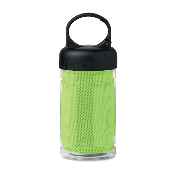 Фляга для питья пластиковая в мини-формате на карабине и с полотенцем внутри.