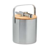 Ведерко для льда из нержавеющей стали с двойными стенками, бамбуковой крышкой и щипцами для льда. Вместимость: 1200 мл.