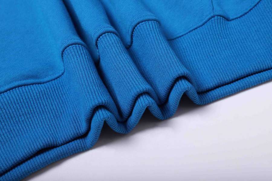 100% хлопок плотность 280 г/м2. Подкладка - френч терри, 3 нити. Эластановая резинка по низу и манжетам, втачка на рукавах, карман кенгуру, капюшон с люверсами и кулиской.