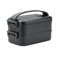 Двухуровневый ланч-бокс из переработанного полипропилена со съемным разделителем и боковыми застежками, герметичная крышка. Вместимость: 800 мл (1 уровень).